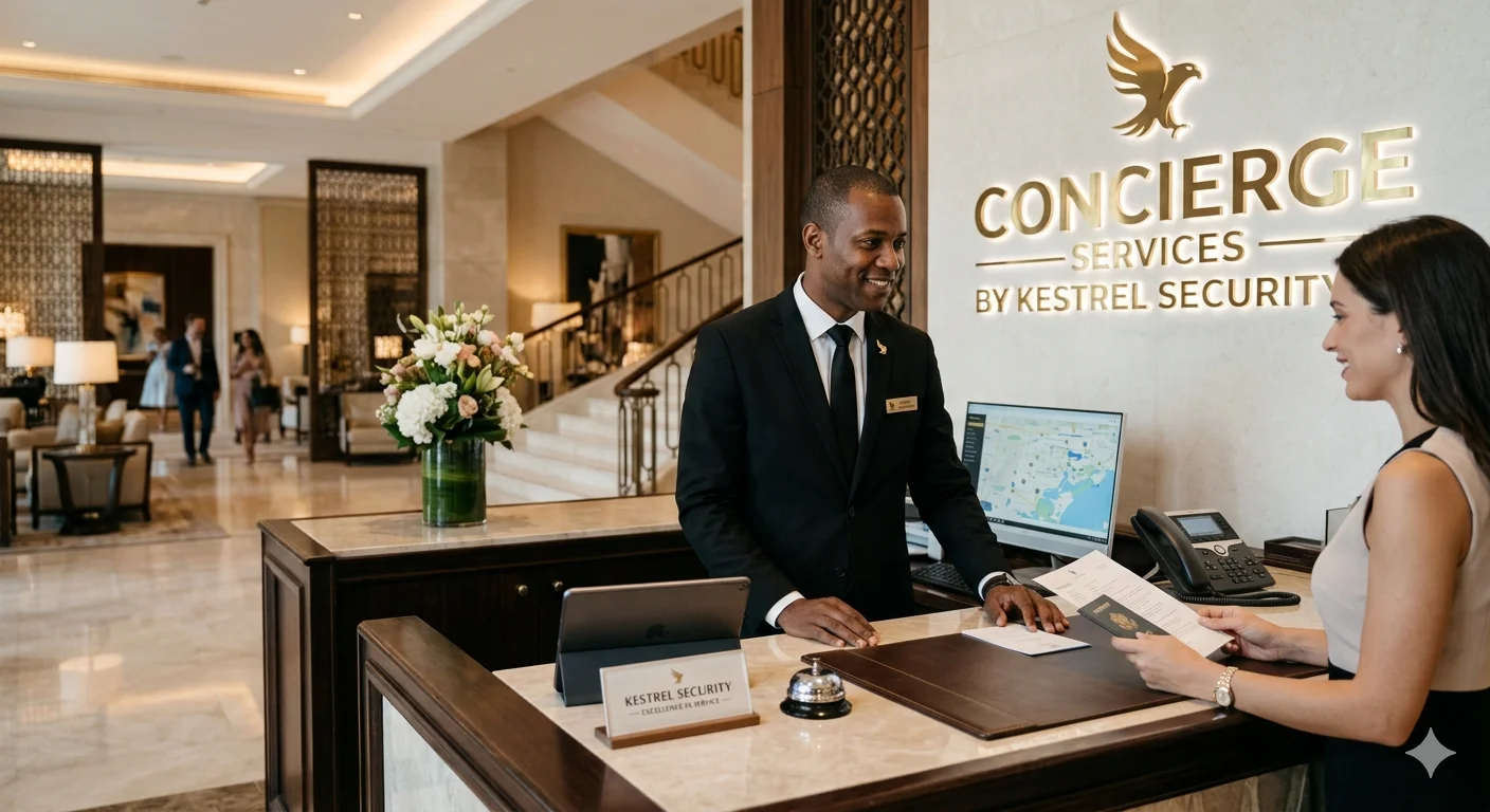 At Kestrel Security, our concierge security service seamlessly integrates front-of-house professionalism with high-level security, ensuring a safe, welcoming, and well-managed environment for your business or residential premises. Our SIA-licensed concierge officers provide access control, visitor management, and emergency response while delivering exceptional customer service. With a focus on sustainability, community safety, and tailored security solutions, we enhance your brand reputation and on-site security without compromising hospitality. Kestrel Security’s concierge security service ensures safety while delivering premium experience for businesses, residential properties, and hospitality venues.